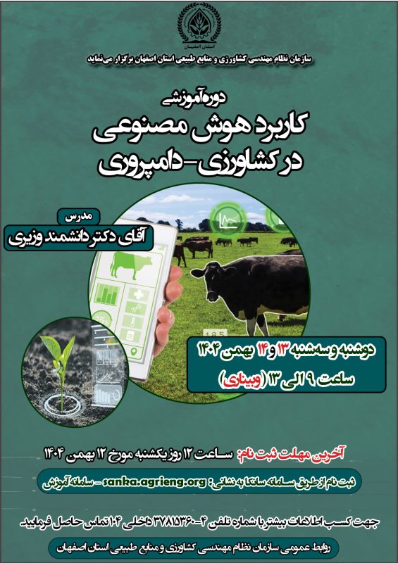 ✅ دوره آموزشی ” کاربرد هوش مصنوعی در کشاورزی-دامپروری “