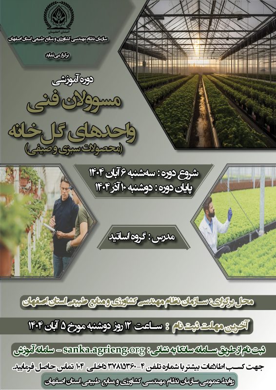 ✅ دوره آموزشی مسوولان فنی واحدهای گلخانه (محصولات سبزی و صیفی)